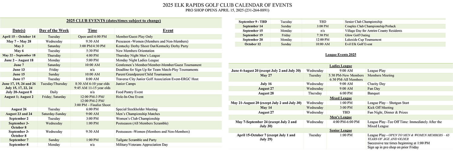 Click the button below to sign up for the Elk Rapids Golf Club's Newsletter!